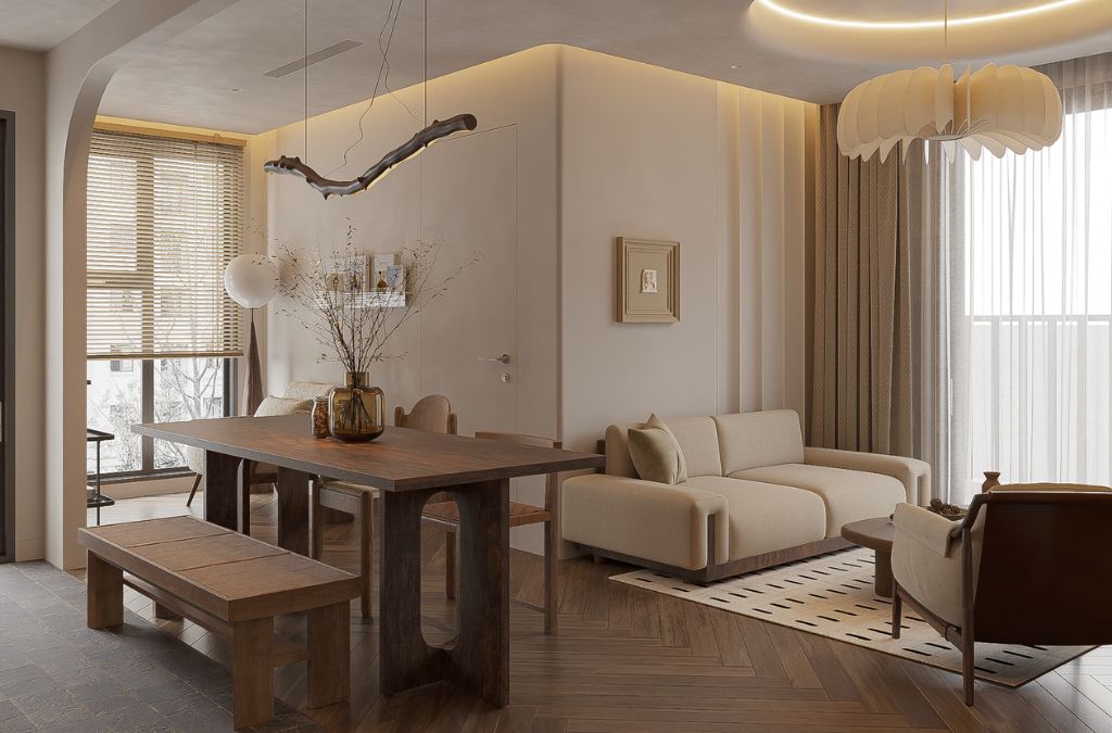 Dành cho gia chủ yêu thích sự tối giản, ấm cúng và gần gũi với thiên nhiên. Phong cách này ưu tiên ánh sáng tự nhiên, vật liệu mộc và công năng sử dụng.