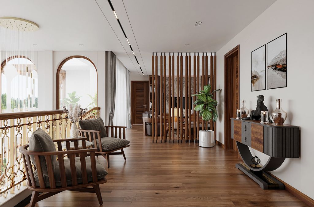 Phong cách tân cổ điển mang đậm tính sang trọng và quý phái. Đây là sự kết hợp hoàn hảo giữa nét cổ điển và tiện nghi hiện đại. Sử dụng phào chỉ, đồ gỗ chạm khắc và các vật liệu như da, phong cách này phù hợp cho những ai yêu thích sự lãng mạn và tinh tế.