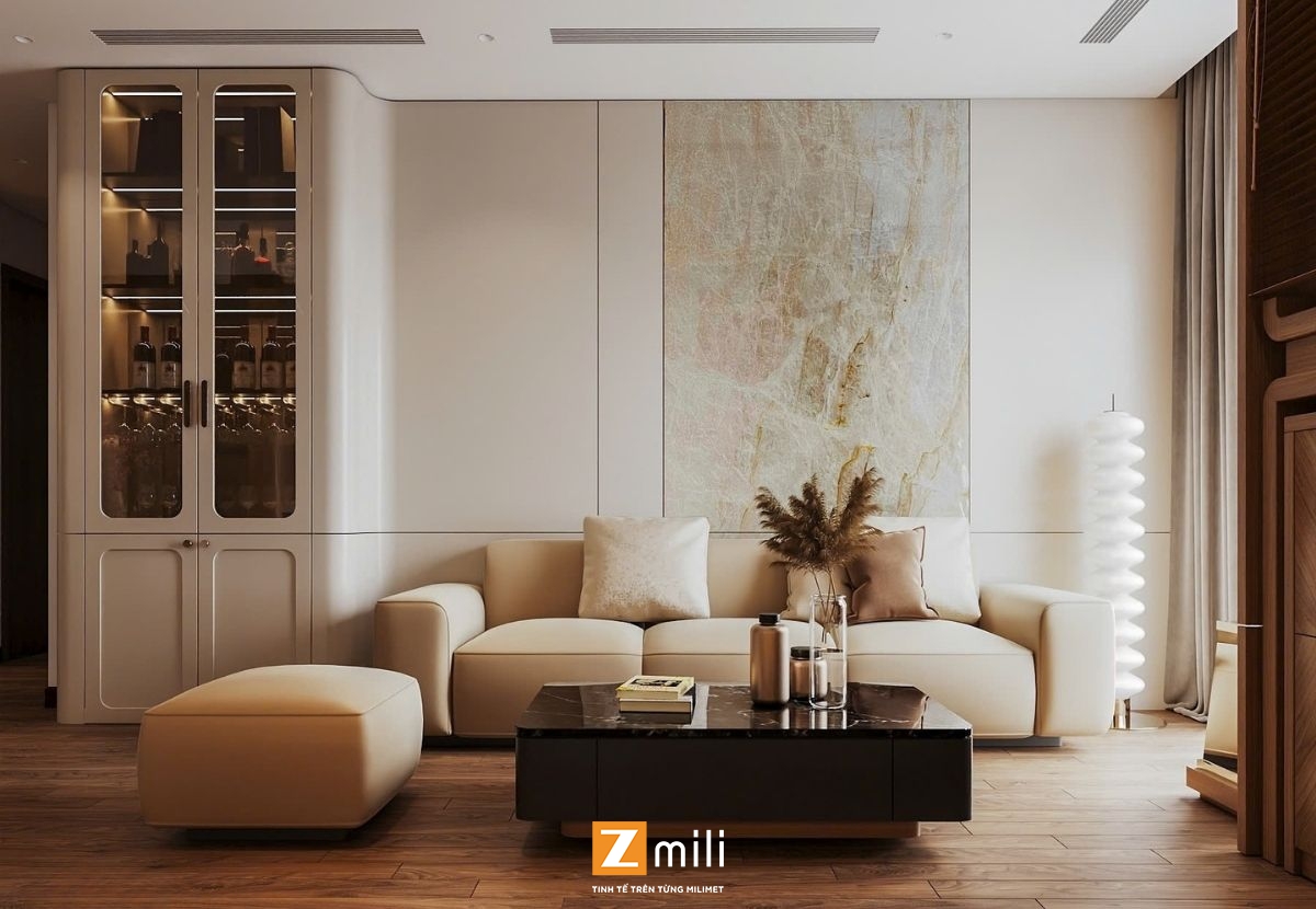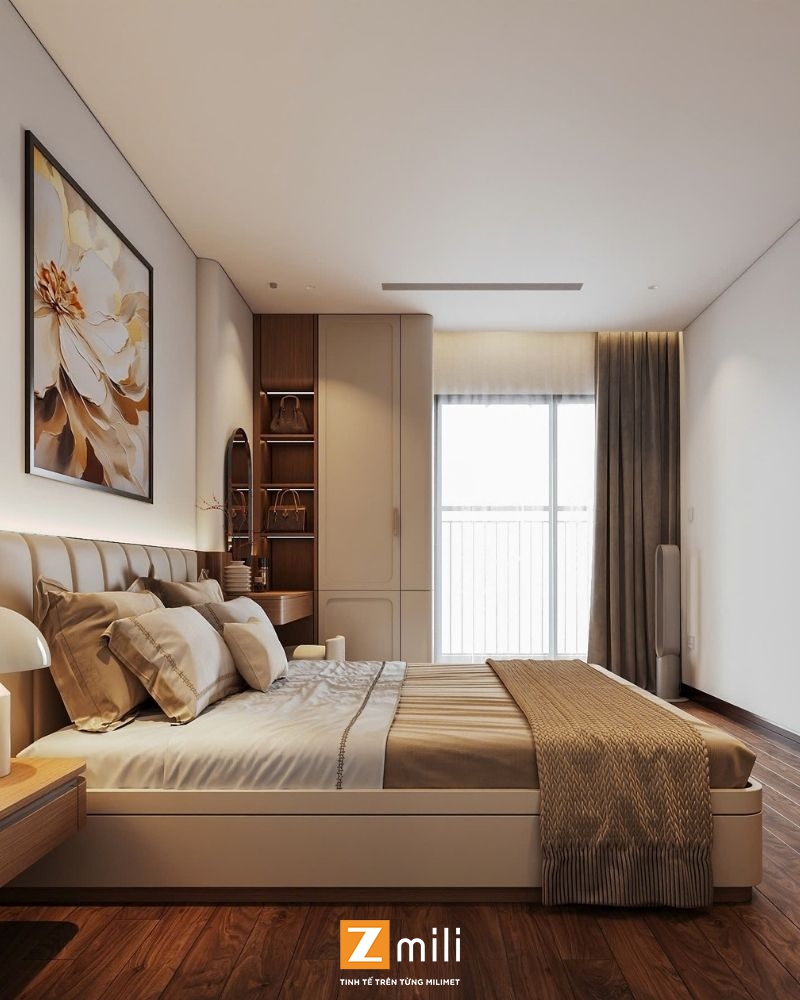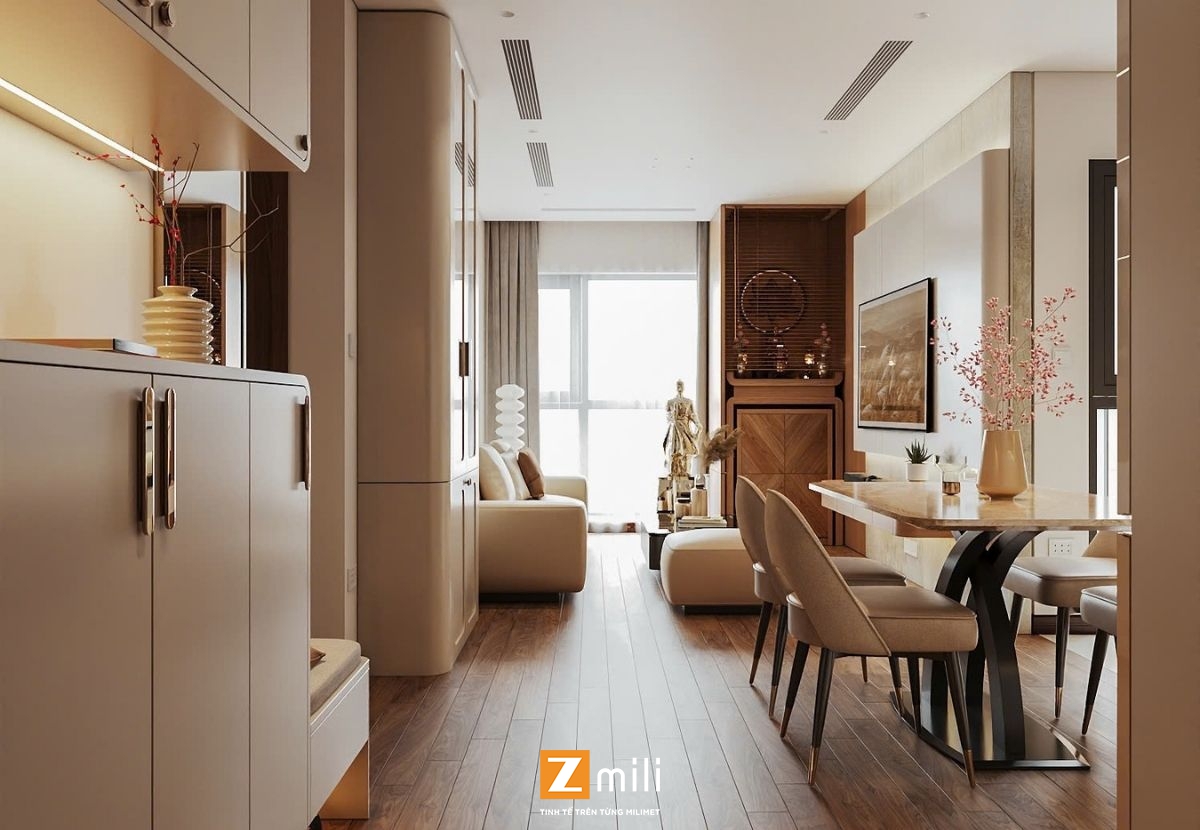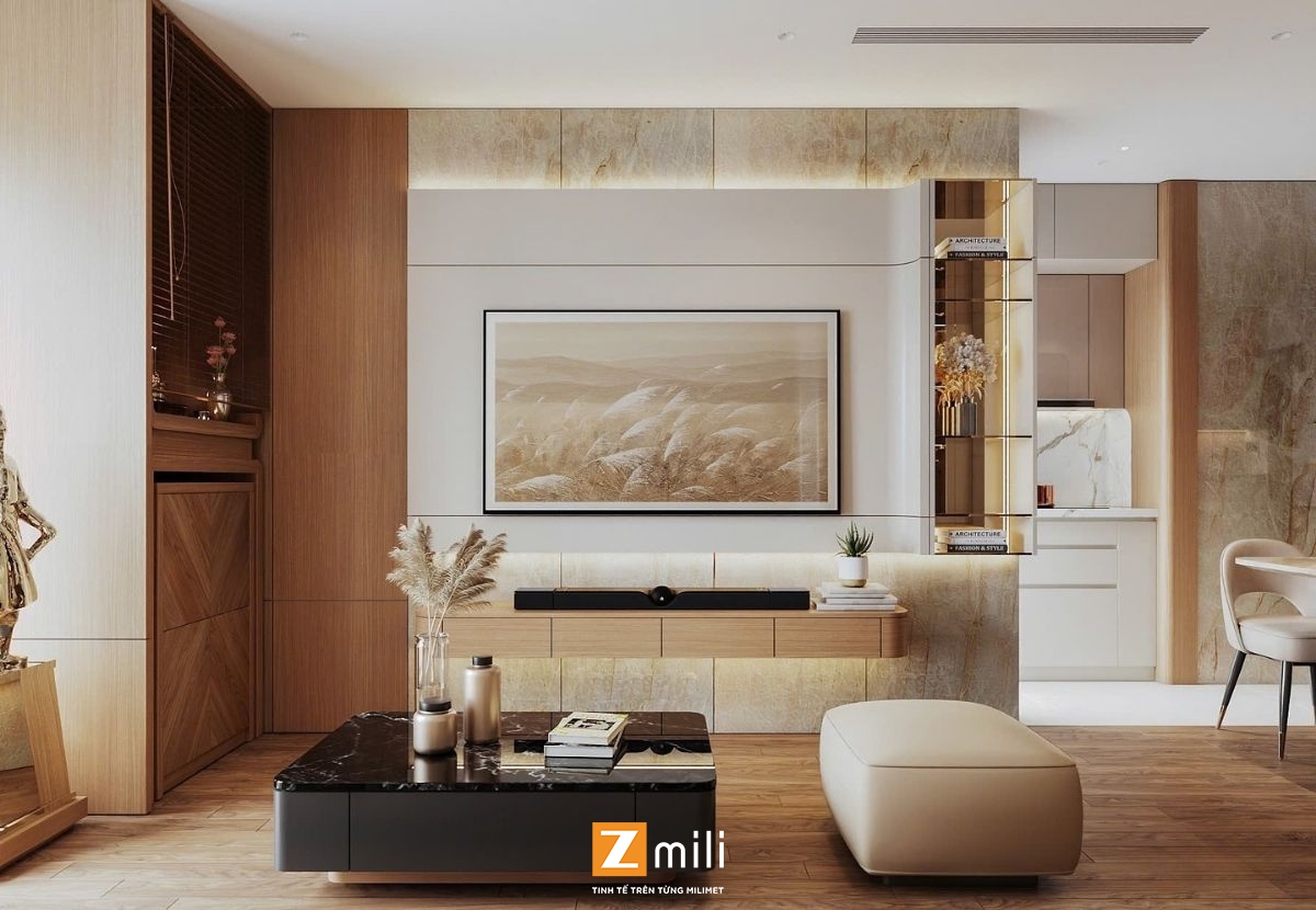 Trong căn hộ MIPEC này, gia chủ mong muốn một không gian thật gọn gàng, thanh lịch, đủ ấm để trở về mỗi ngày mà vẫn giữ được chất riêng. Zmili bắt đầu từ những điều rất đời sống: thói quen di chuyển, cách cất đồ, cảm giác muốn thấy khi bật đèn vào buổi tối. Từ đó, mọi giải pháp đều xoay quanh sự tiện dụng và nét thẩm mỹ tự nhiên nhất.