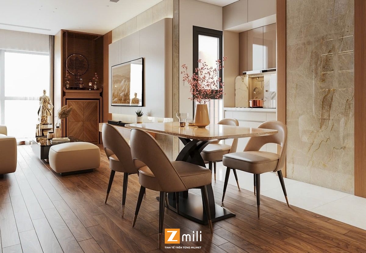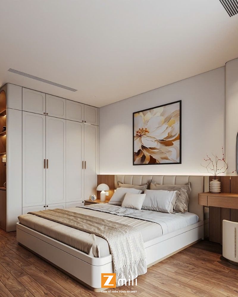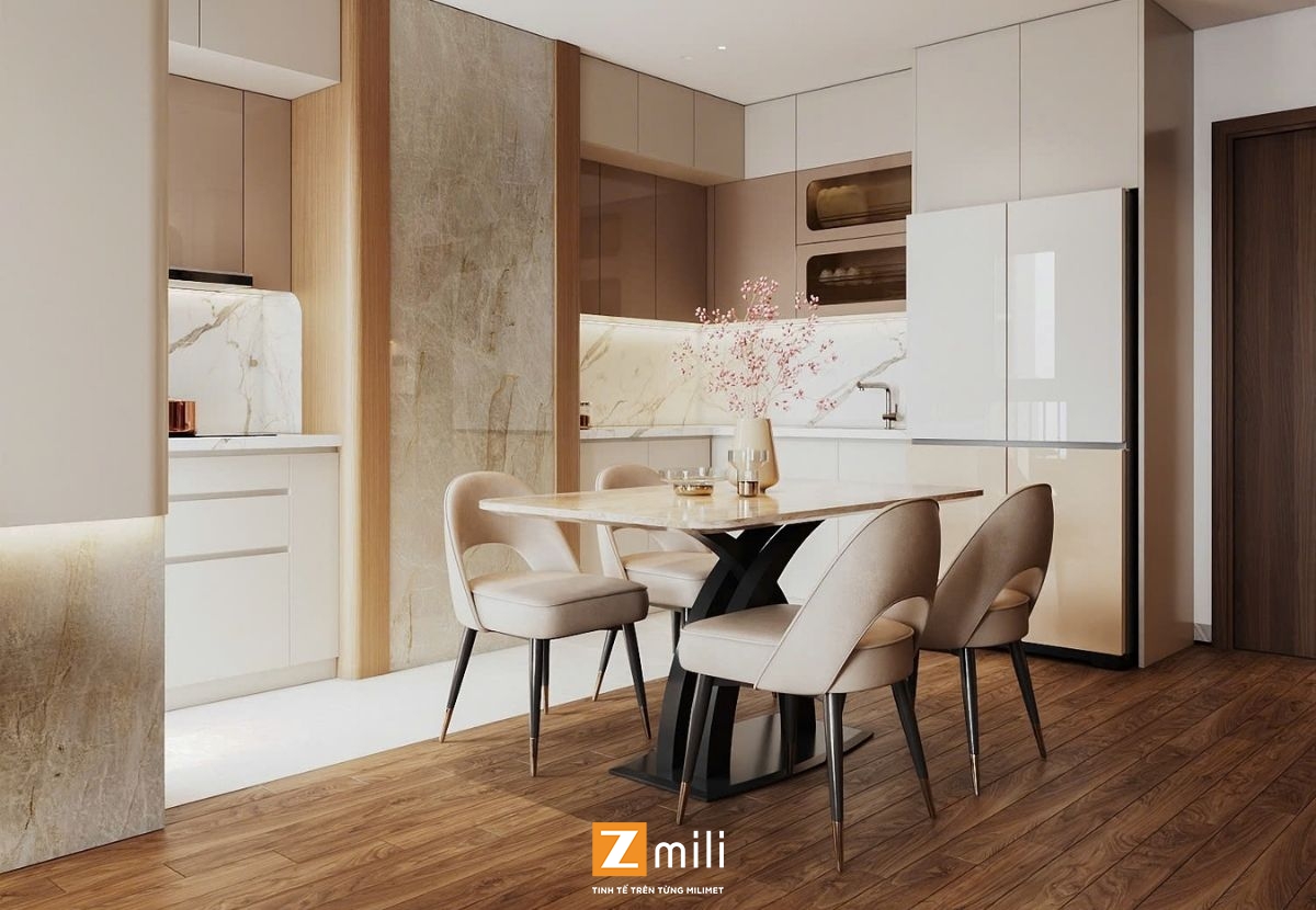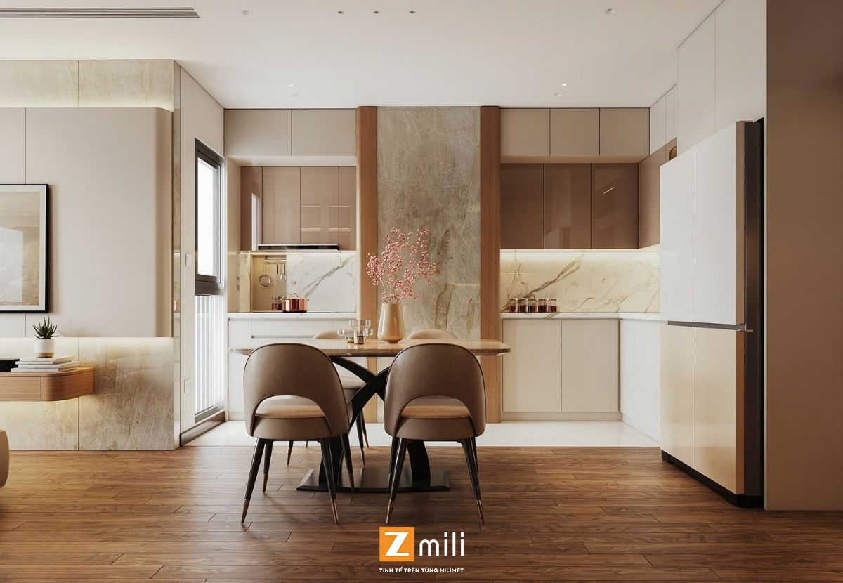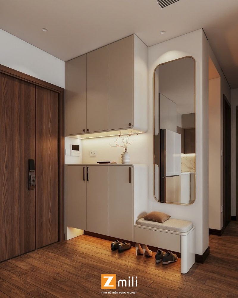 Trong căn hộ MIPEC này, gia chủ mong muốn một không gian thật gọn gàng, thanh lịch, đủ ấm để trở về mỗi ngày mà vẫn giữ được chất riêng. Zmili bắt đầu từ những điều rất đời sống: thói quen di chuyển, cách cất đồ, cảm giác muốn thấy khi bật đèn vào buổi tối. Từ đó, mọi giải pháp đều xoay quanh sự tiện dụng và nét thẩm mỹ tự nhiên nhất.
