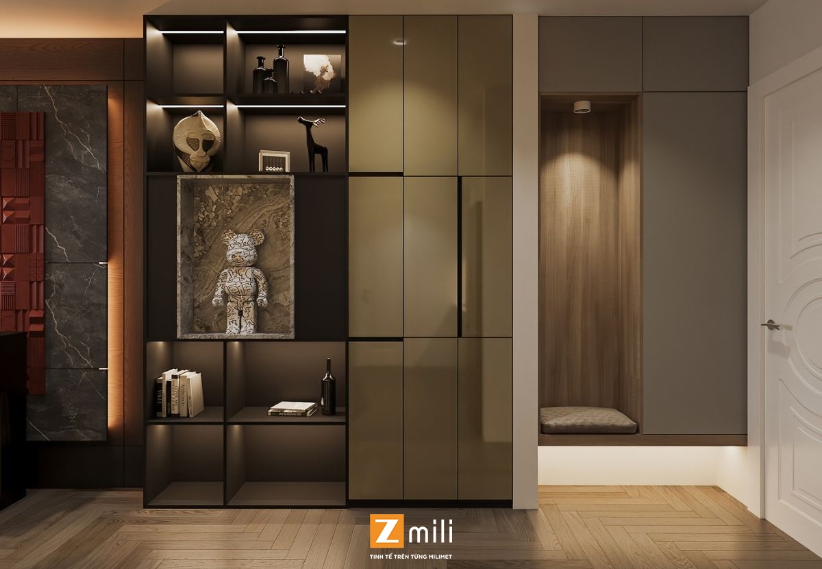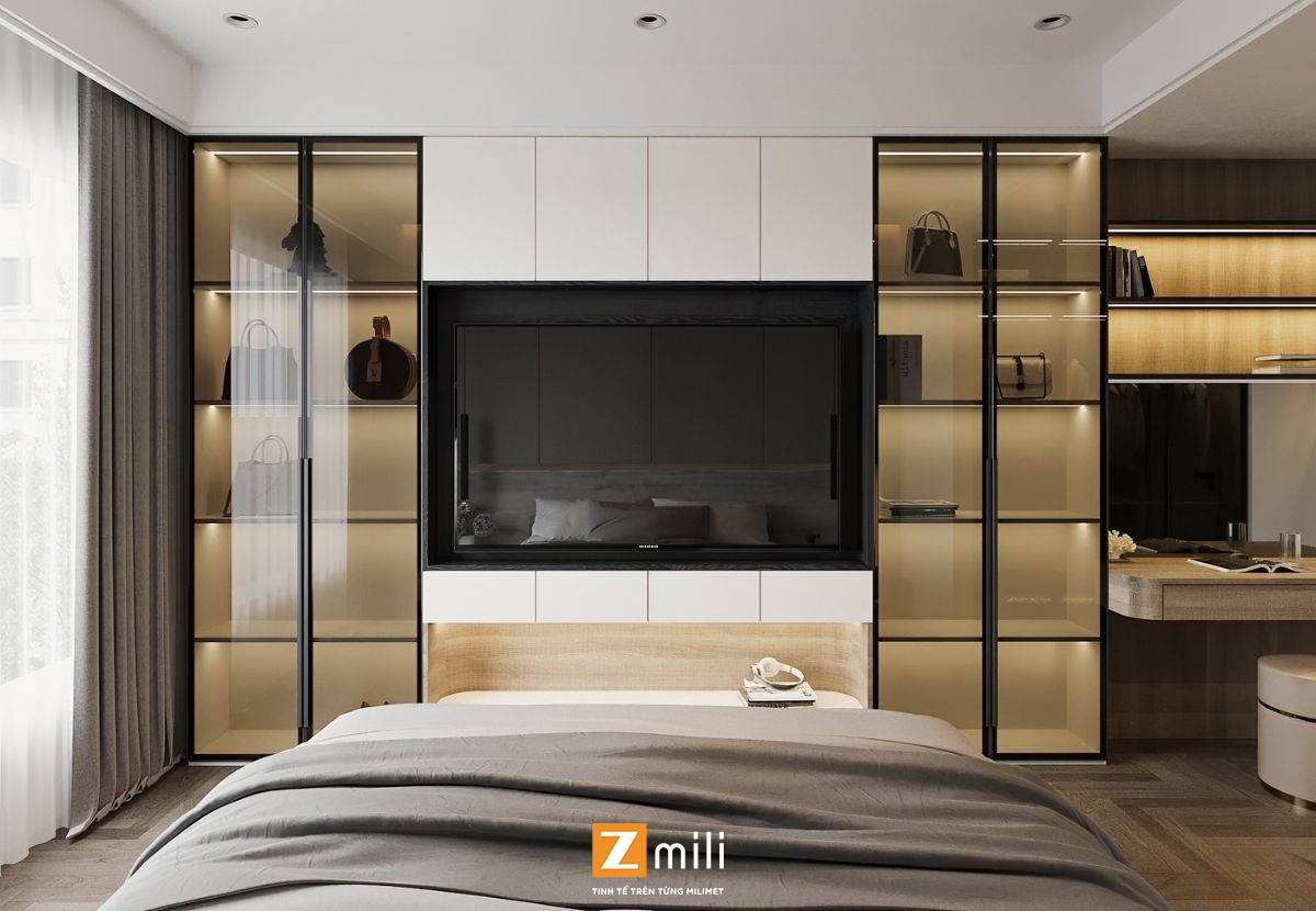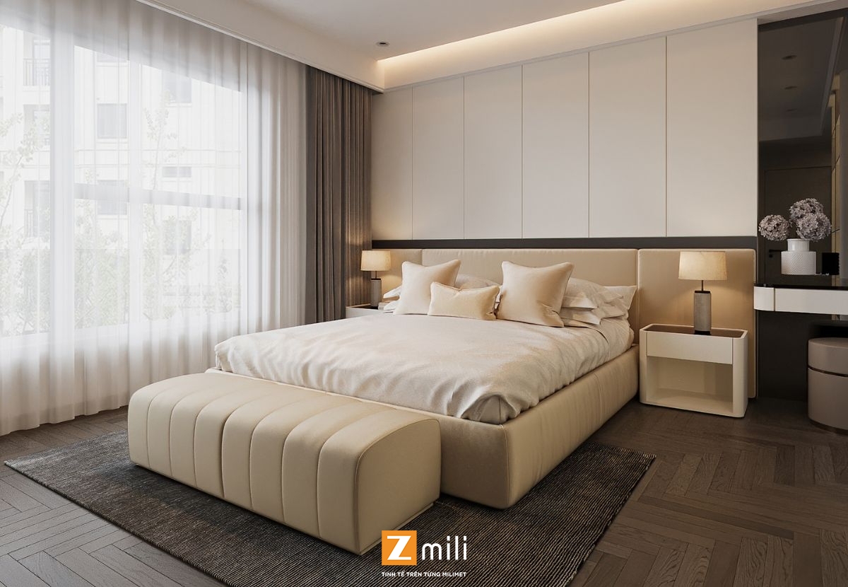 Điểm nhấn nổi bật của công trình là sự giao thoa giữa các vật liệu cao cấp như đá tự nhiên, gỗ và hệ tủ cánh kính hiện đại. Từ phòng khách lịch lãm cho đến phòng ngủ Master yên bình, mỗi milimet không gian đều được Zmili Design tối ưu hóa công năng, mang lại trải nghiệm sống thượng lưu và cảm giác thư giãn tuyệt đối cho gia chủ.