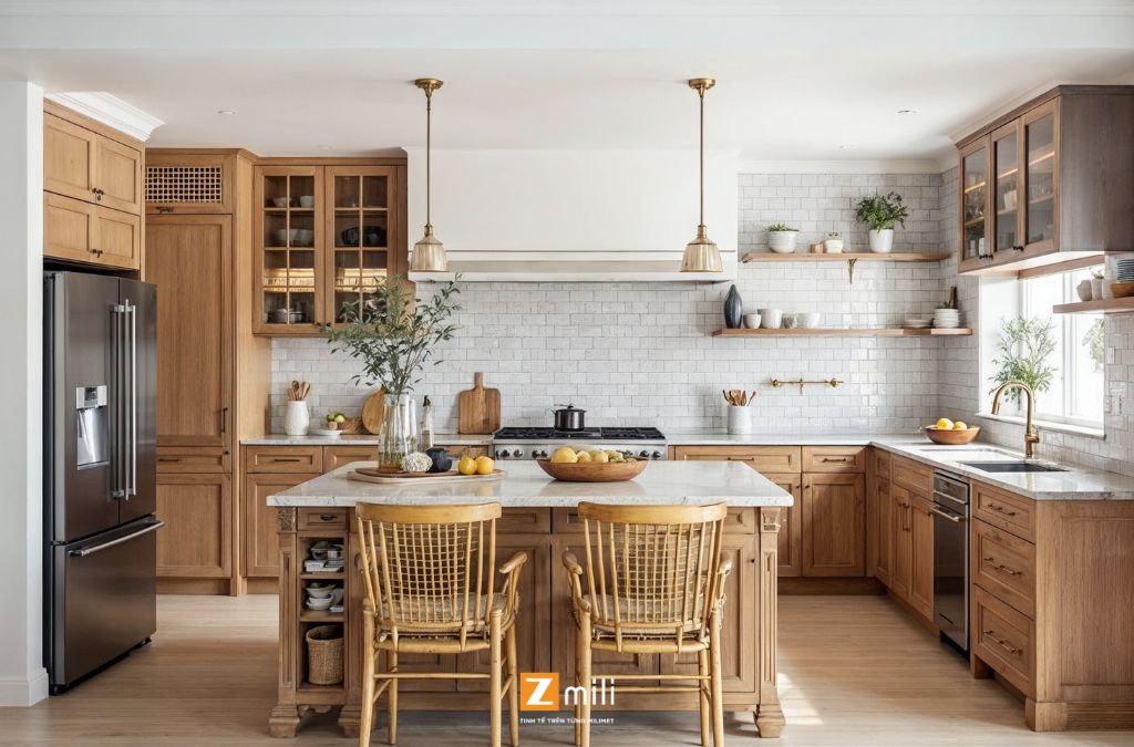 - 2.2. Vật liệu nội thất – Linh hồn của không gian bếp Đông Dương