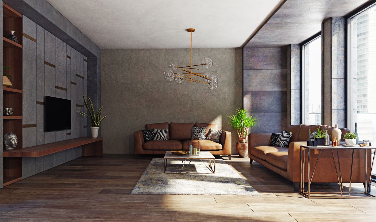 Nội thất trong phong cách này ưu tiên thiết kế tối giản, hình khối rõ ràng, vật liệu hiện đại như kính, kim loại sơn tĩnh điện, gỗ ép veneer. Ghế sofa góc, bàn trà tròn nhỏ, kệ TV treo tường hay đèn thả kiểu dáng hình học là những món đồ không thể thiếu.